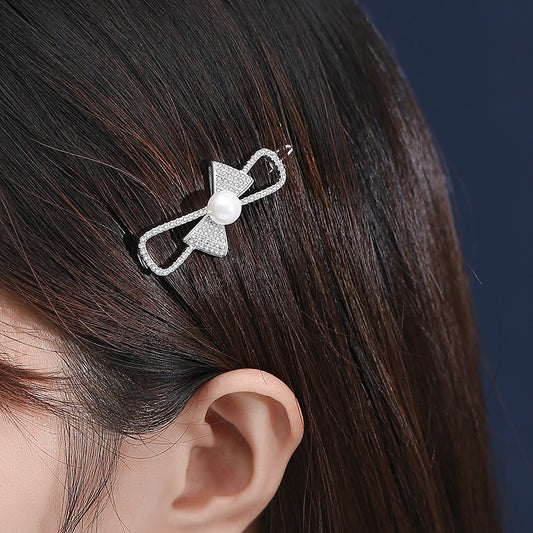 Feelive Chic Style Bow-knot Pearl Zircon Hair Barrette