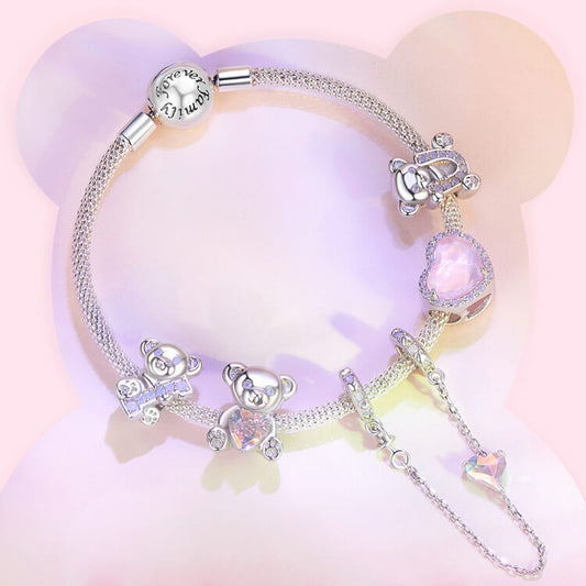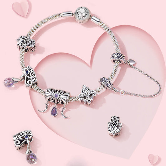 Fantasy Vintage Style Pattern Gems Sterling Silver Charm Set