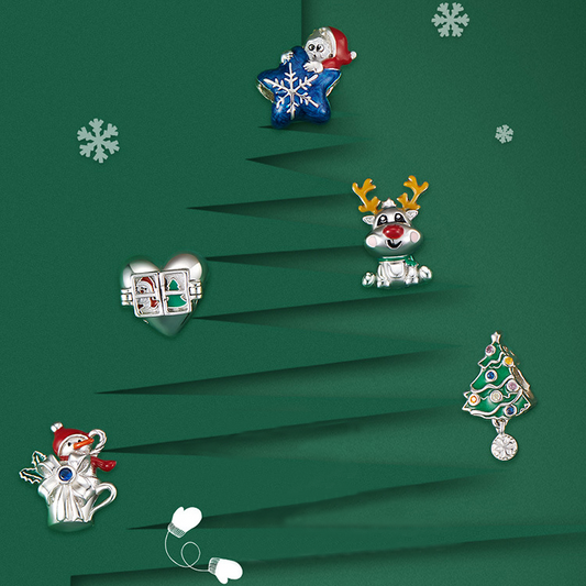 Fantasy Christmas Night Luminous Sterling Silver Charm Set