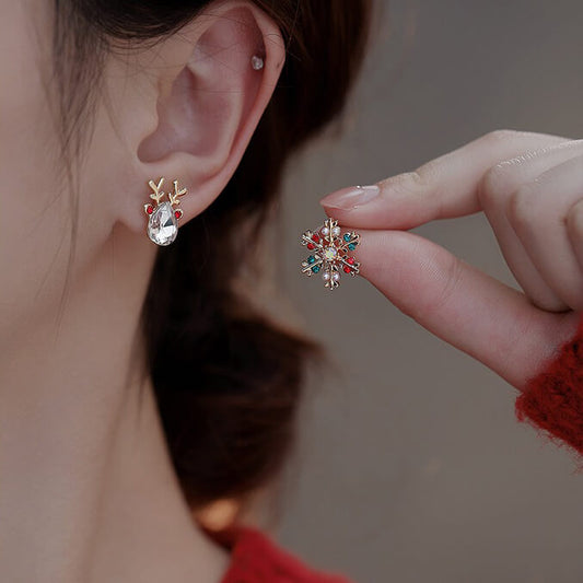 FEELIVE Christmas Reindeer Snowflake Zircon Asymmetric Earrings