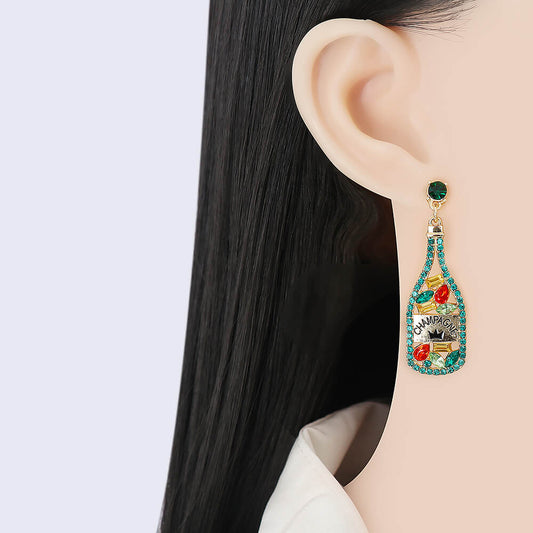 FEELIVE Party Champagne Bottle Earrings with Colored Stones