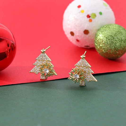 FEELIVE Luxurious Christmas Tree Shaped Zircon Drop Earrings