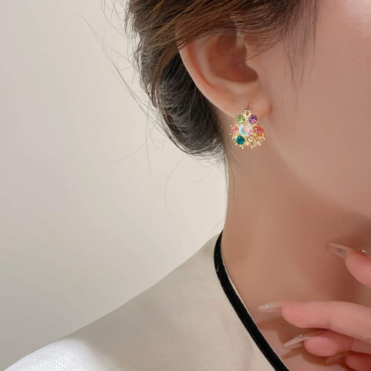 FEELIVE Multicolored Zircon Colorful Flowers Earrings