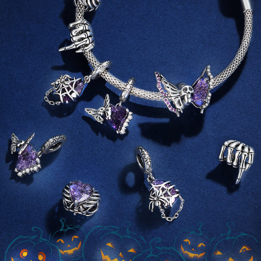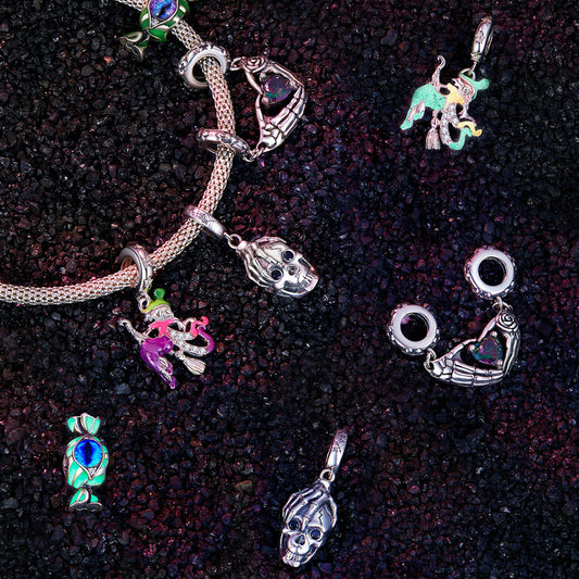Glow-in-the-dark Halloween Cat Witch Sterling Silver Charm