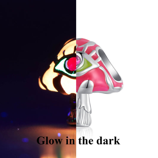 Glow-in-the-dark Hallucinogenic Mushroom Sterling Silver Charm