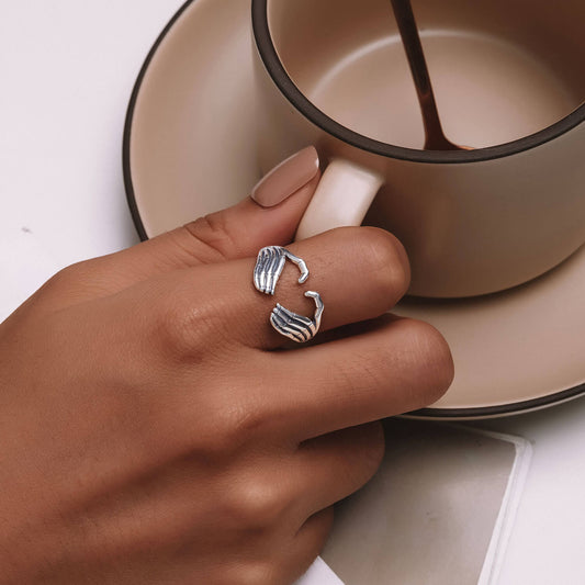 Skeleton Hand Heart Gesture Sterling Silver Ring