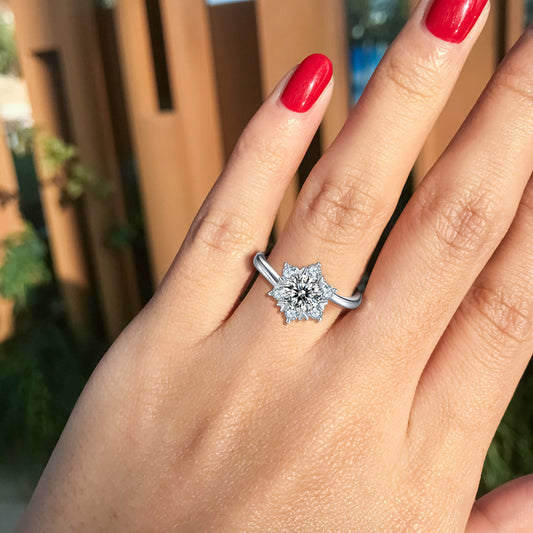 Classic Round Moissanite Sterling Silver Chevron Ring