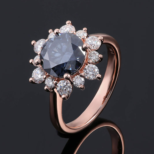 FEELIVE Vintage Blue Sun Moissanite Inlaid 14K Gold Halo Ring (Round Moissanite)