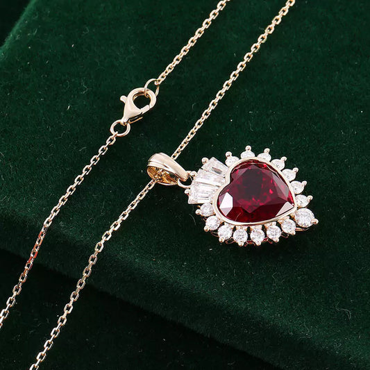 FEELIVE Vintage Red Heart Moissanite Halo Necklace (Heart Moissanite)