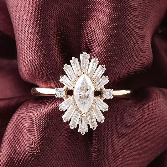 FEELIVE Vintage Style Marquise-cut Moissanite Halo Ring in 10K Gold (Marquise Moissanite)