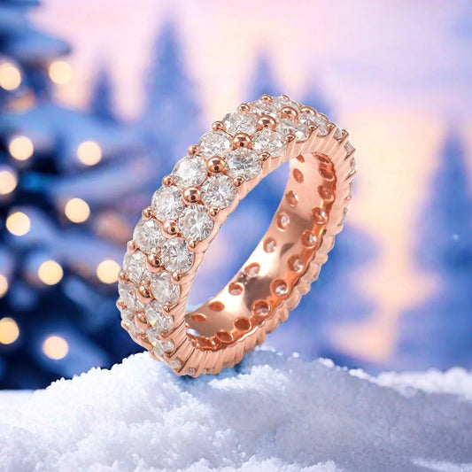 FEELIVE Classic Double Row Moissanite 14K Gold Eternity Ring (Round Moissanite)