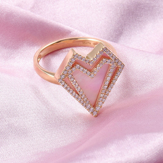 FEELIVE Exaggerated Heart Moissanite Inlaid 10K Gold Cocktail Ring (Round Moissanite)