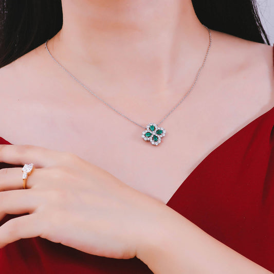 FEELIVE Lucky Clover Lab Created Emerald Silver Necklace (1.0 ct Pear Moissanite)