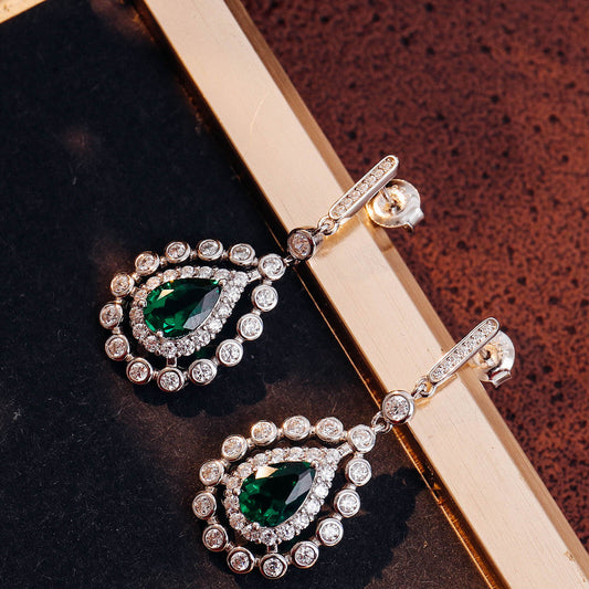 FEELIVE Lace Pear Shaped Lab Create Emerald Silver Earrings (2.0 ct Pear Moissanite)