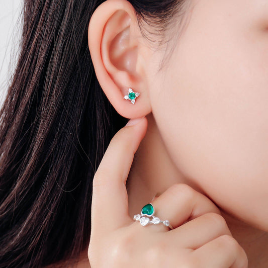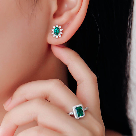 FEELIVE Oval Flower Lab Created Emerald Silver Earrings (0.8 ct Oval Moissanite)