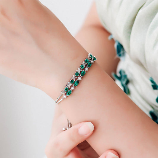 FEELIVE Four-leaf Clover Lab Create Emerald Silver Bracelet (0.6 ct Round Moissanite)