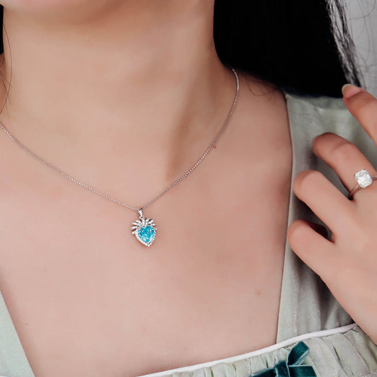 FEELIVE Blue Heart Flower Lab Created Gem Silver Necklace (Heart Moissanite)