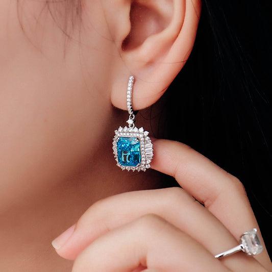 FEELIVE Luxury Blue Radiant Lab Created Gem Silver Earrings (Radiant Moissanite)