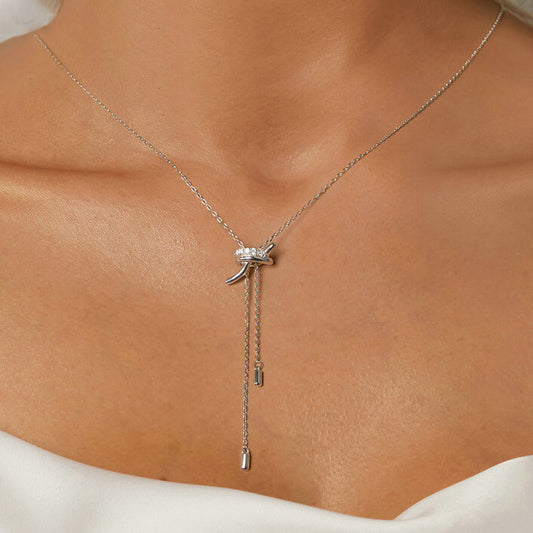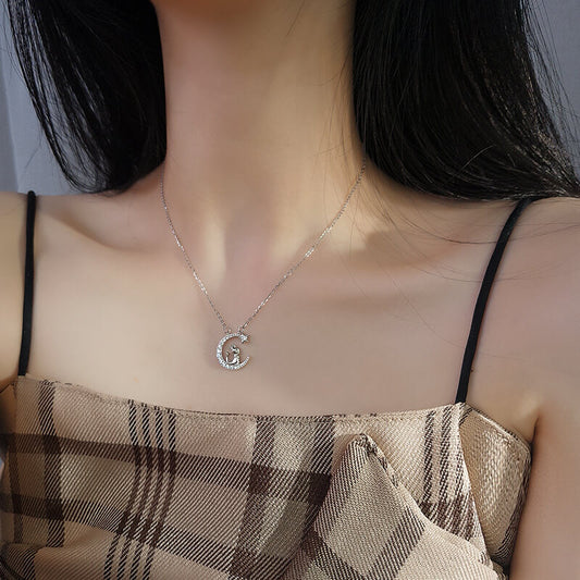 FEELIVE Double C Shape Pendant Flashing Zircon Silver Necklace