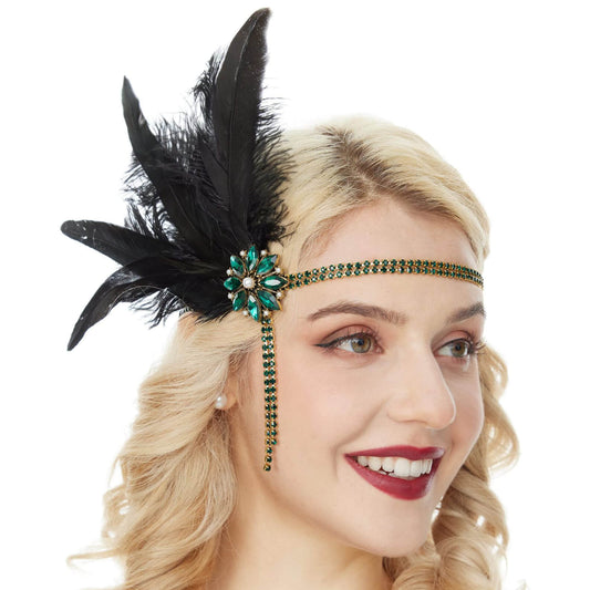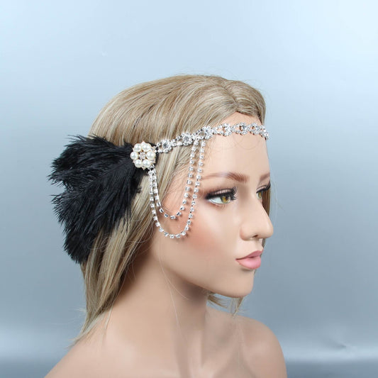 1920s Gatsby Style Faux Feather Tassel Masquerade Headband