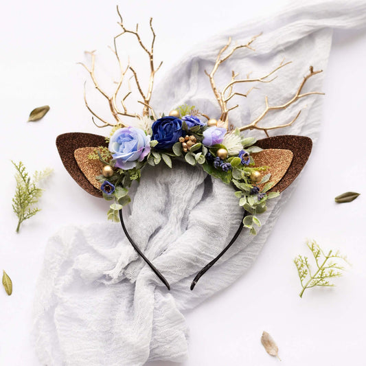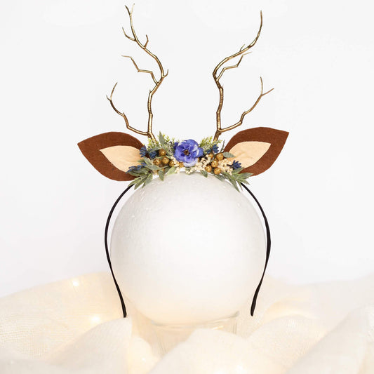 FEELIVE Glowing Simulated Reindeer Antler Navy Pampas Headband【Free Gift Box】