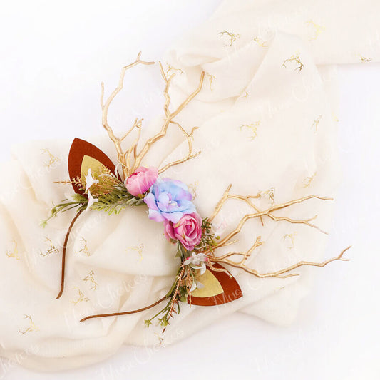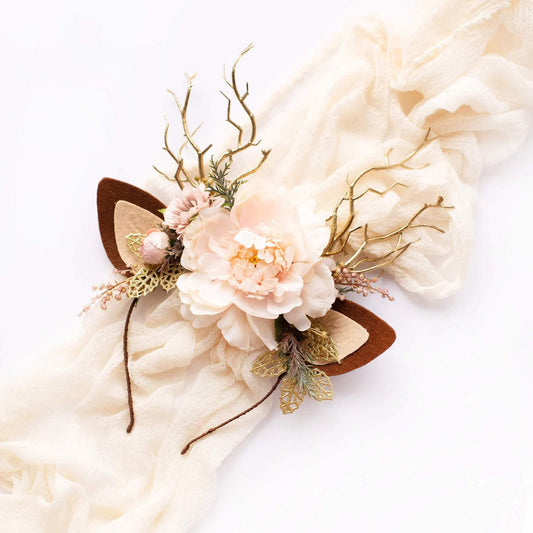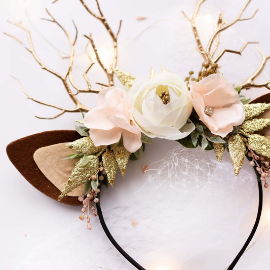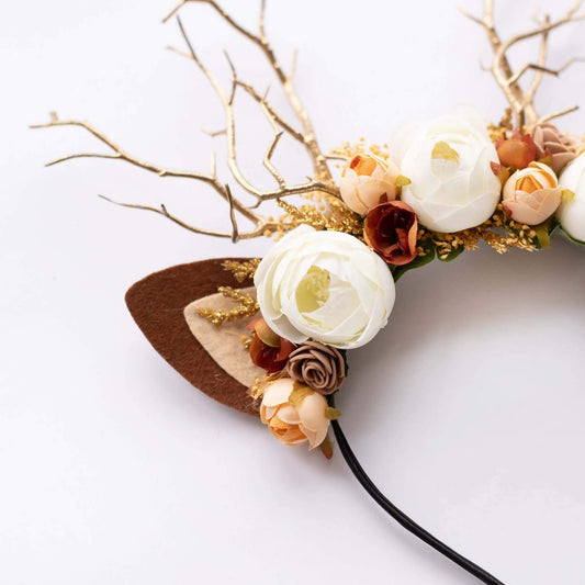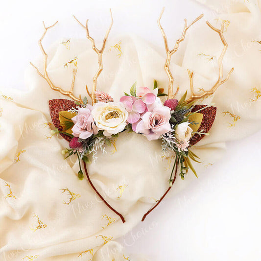 FEELIVE Glowing Simulated Reindeer Antler Cream Rosebud Headband【Free Gift Box】