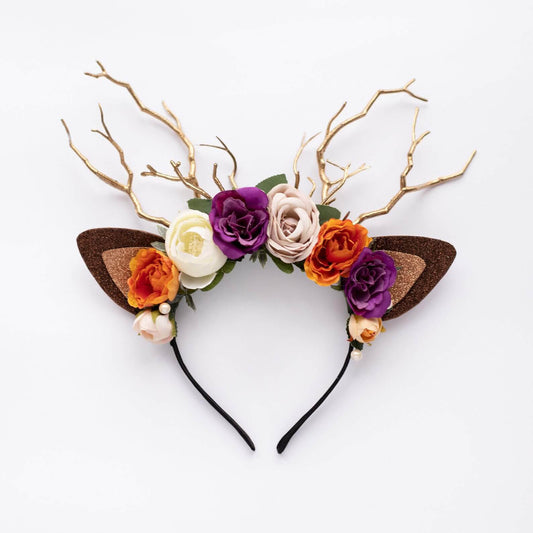 FEELIVE Glowing Simulated Reindeer Antler Lavender Aster & Burnt Orange Headband【Free Gift Box】