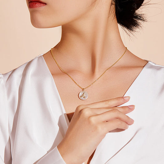 Vintage Alphabet Coin Shell Pearl Sterling Silver Necklace