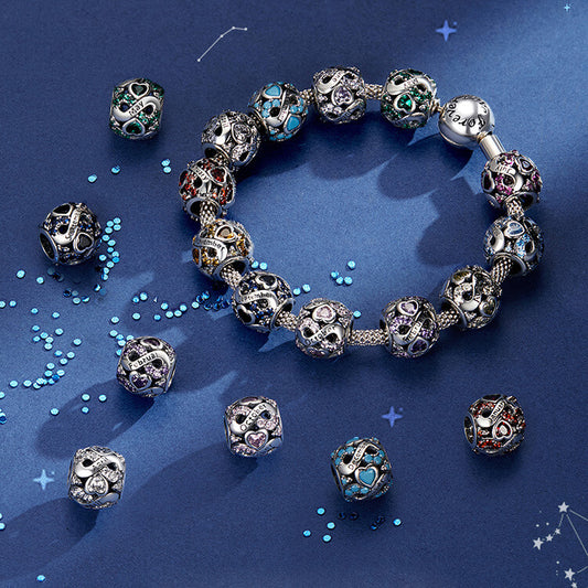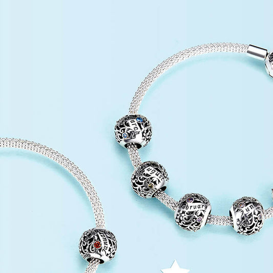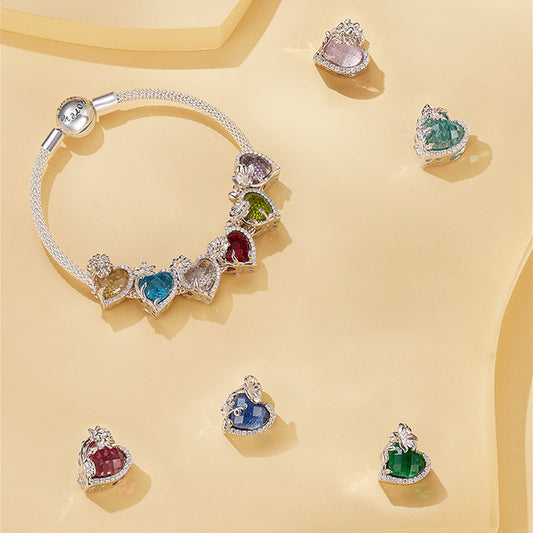 Twelve Month Flowers and Birthstones Sterling Silver Charm