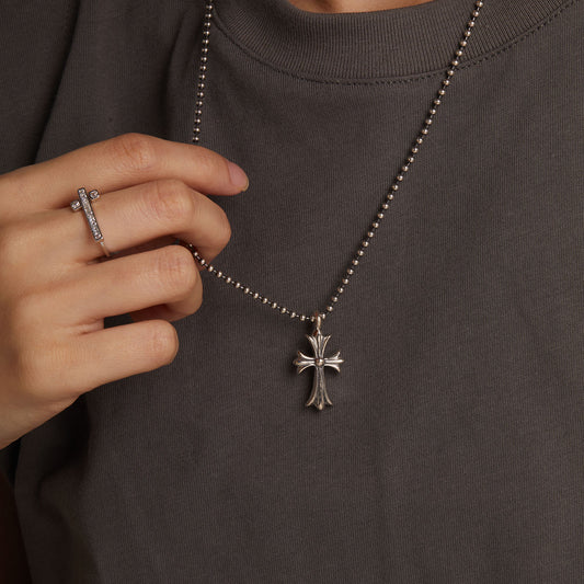 Emerald Faceted Row Set Cross Vermeil Necklace