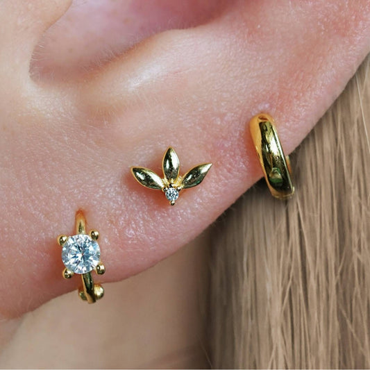 Three Leaves Zircon Gold Vermeil Nap Earring
