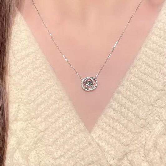 FEELIVE Double C Shape Pendant Flashing Zircon Silver Necklace