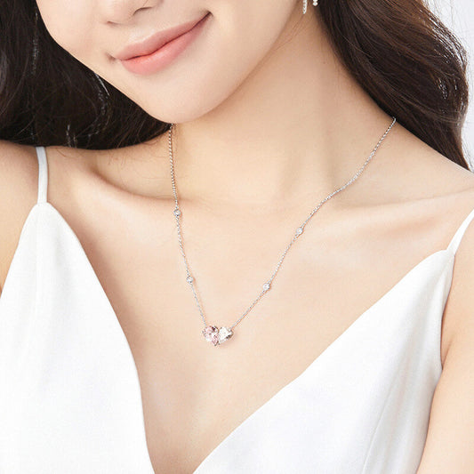 FEELIVE Sweet Peach Blossom Zircon Silver Necklace