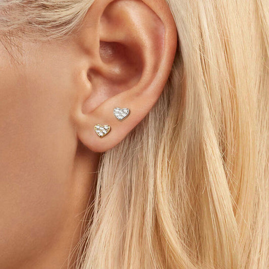 Small Heart Zircon Gold Vermeil Silver Stacked Earrings