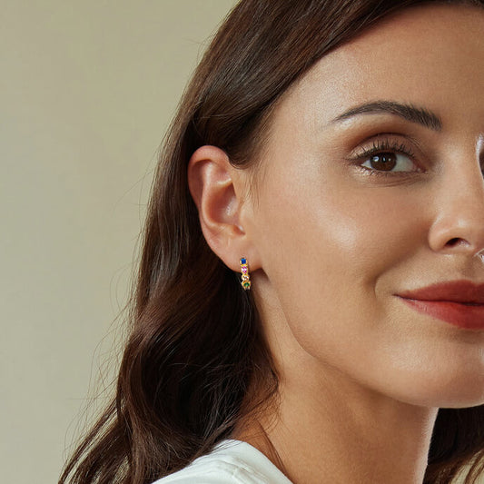Colorful Polygonal Zircon Sterling Silver Earrings