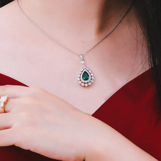 FEELIVE Lace Pear Lab Created Emerald Silver Necklace (2.5 ct Pear Moissanite)