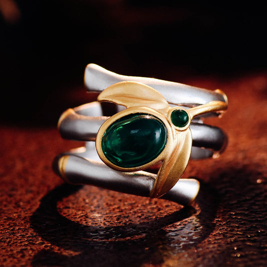 FEELIVE Hummingbird Lab Created Emerald Gold Vermeil Ring (1.4 ct Moissanite)