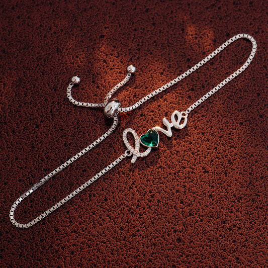 FEELIVE Love Pendant Lab Created Emerald Silver Bracelet (0.5 ct Heart Moissanite)