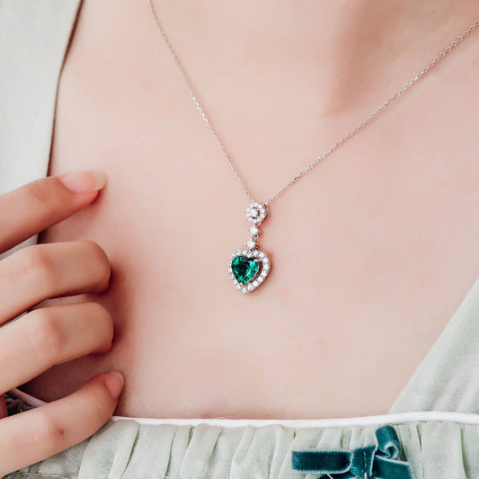 FEELIVE Heart Lab Created Emerald Silver Necklace (1.45 ct Heart Moissanite)