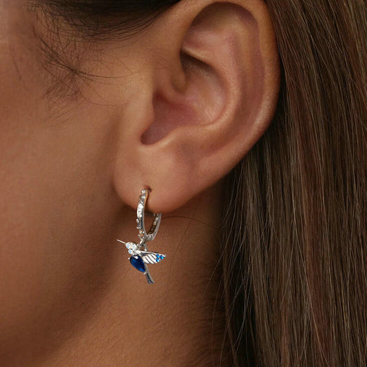 Elegant Blue Hummingbird Sterling Silver Earrings