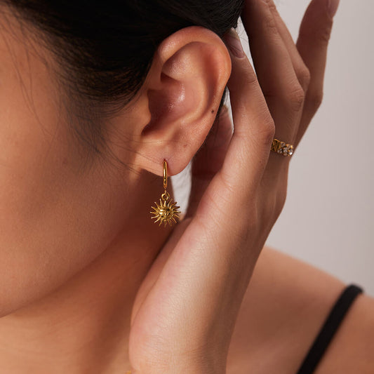 FEELIVE Vintage Sun Face Gold Plated Huggie Earrings