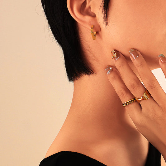U Shaped Zircon Gold Plated Titanium Huggie Earrings