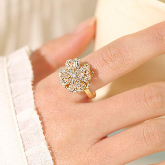 FEELIVE Creative Rotating Lucky Four-leaf Clover Zircon Ring