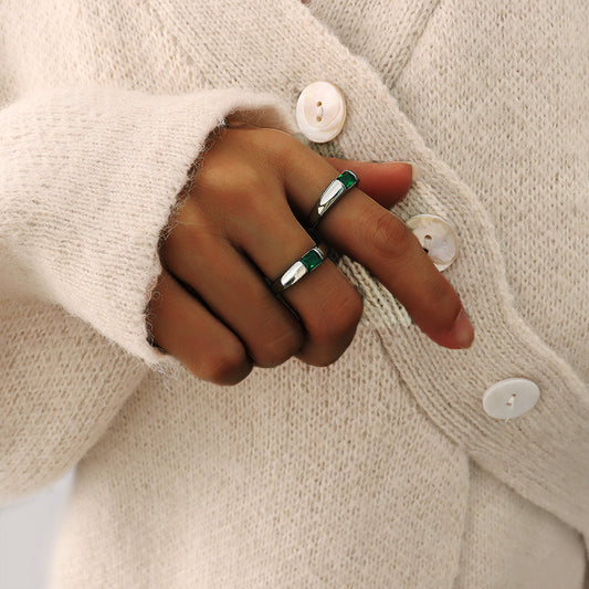 Imitation Emerald Zircon Gold Plated Titanium Ring