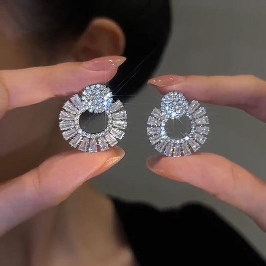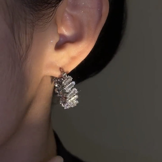 FEELIVE Luxurious Style Jagged Shaped Rectangular Zircon Earrings