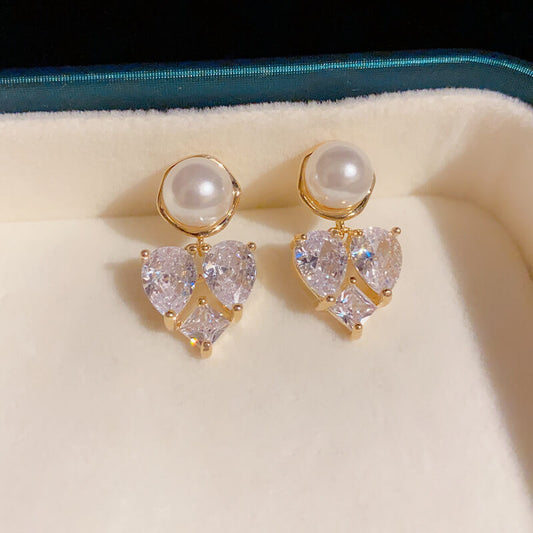 FEELIVE Vintage Elegant Heart Shaped Zircon Pearl Earrings