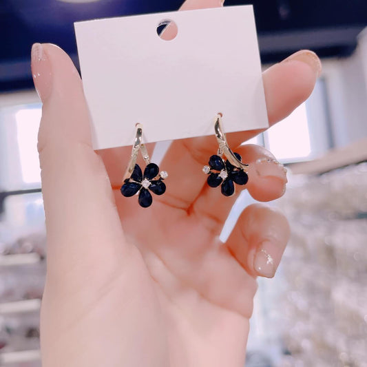 FEELIVE Elegant Black Flower Zircon Huggie Earrings