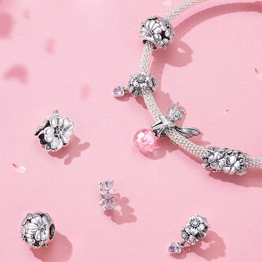 Pink Garden Sterling Silver Charm Set