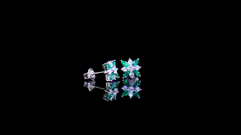 FEELIVE Classic Flower Lab Created Emerald Silver Earrings (0.5 ct Moissanite)