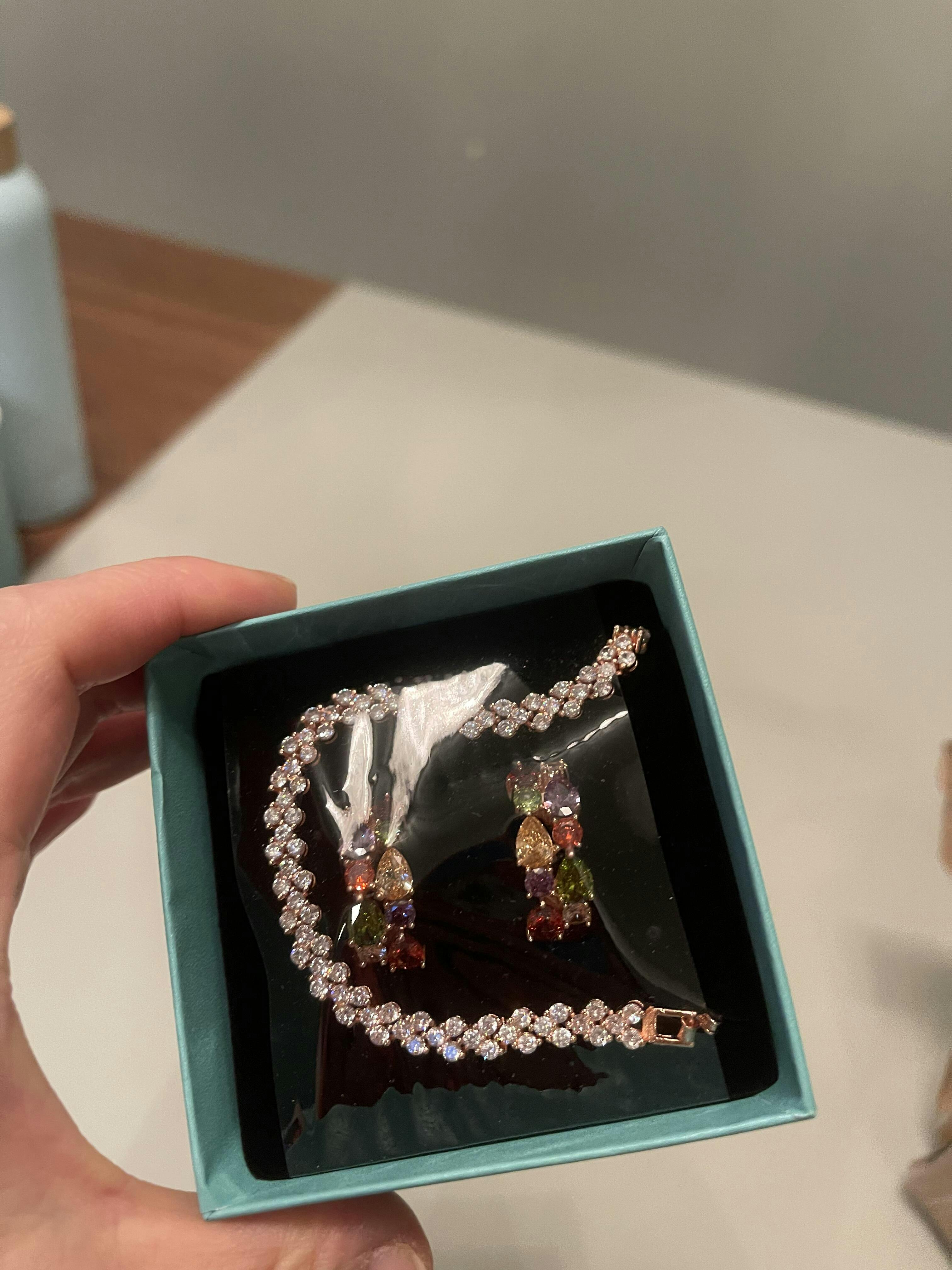 I bought a pair of earrings, it was surprised me . Very high quality colourful gem stones just like the super banded jewels.